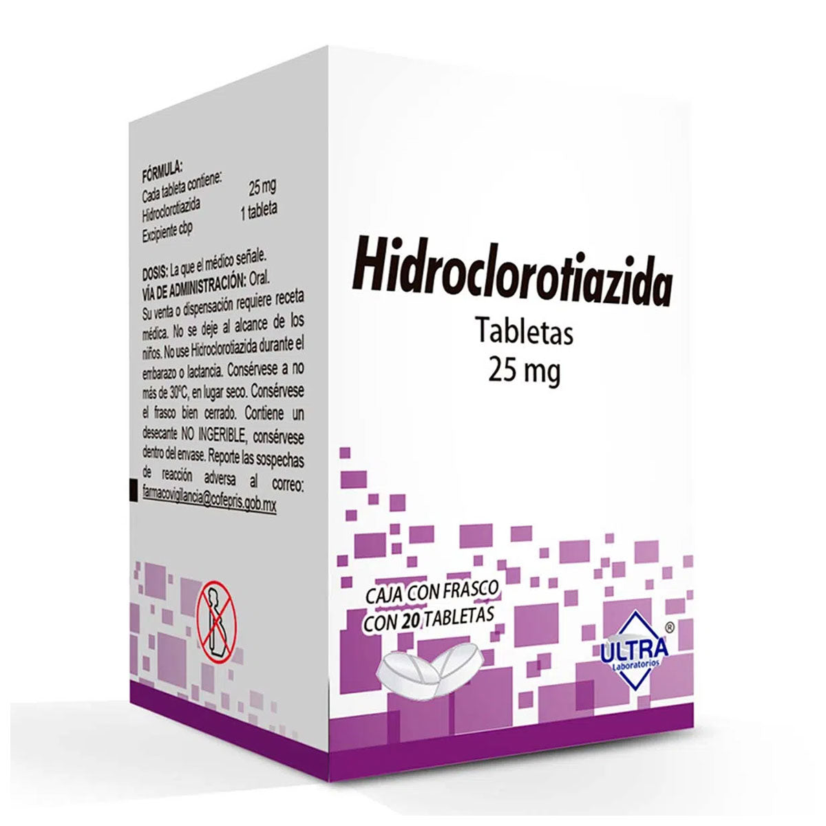 Hidroclorotiazida 25 mg, 20Tabletas. ULTRA
